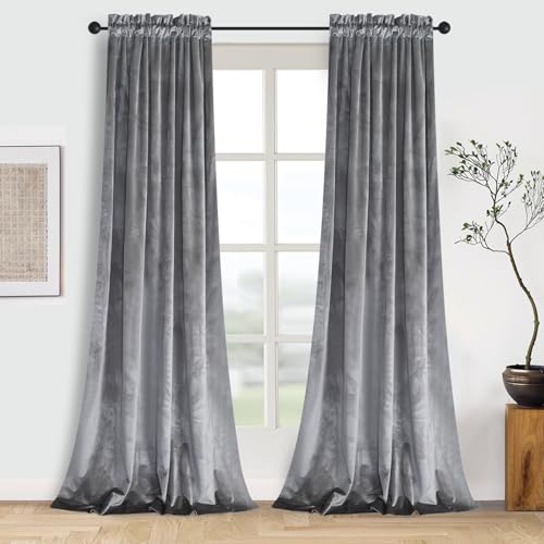 Roslynwood hem vardagsrum silver sammet gardiner – ljudreducerande tunga matt solida gardinstänger/52 B x 84 L sliver, 2 paneler