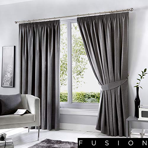 Fusion – Kolgrå mörkläggningsgardiner, B 168 x L 183 cm (66 x L 72 tum) – Pennvecksgardiner i grått – 2 paneler – termiska gardiner för sovrum och vardagsrum – veckade gardiner och draperier i mörkgrå