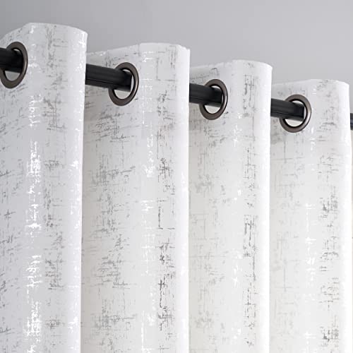 Taisier Home Metalliska vita ljusblockerande gardiner vardagsrum prickar tryck silver geometriska gardiner 160 cm linne textur gardiner för sovrum fönsterbehandlingsset öljett topp, 2 paneler