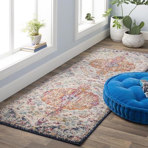 Surya Asmara Vintagematta – löpare mattor, vardagsrum, hall, kök – traditionell orientalisk färgad boho-matta, lättskött – stora mattlöpare 80 x 150 cm, blå och orange matta