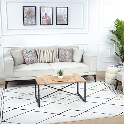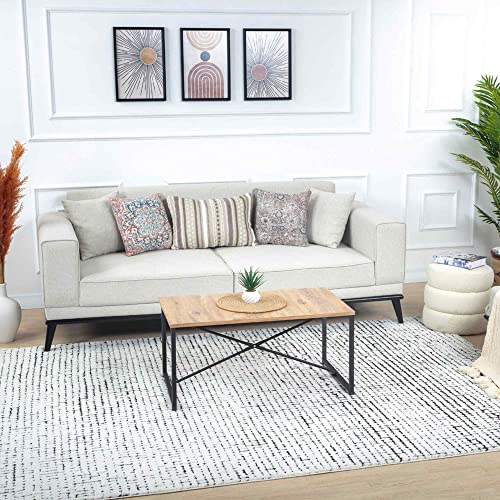 Livabliss Linkka geometrisk matta – Scandi-mattor vardagsrum 160 x 213 cm, matsal, kök – neutrala, abstrakta mönstrade mattor, boho-stil, lättskött lugg – stor matta, svart och gräddvit