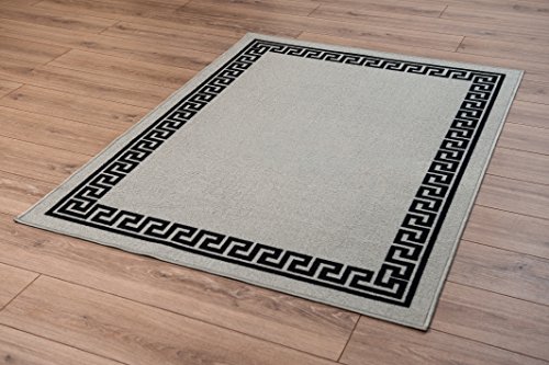 Maskintvättbar grekisk nyckel, triangulär, diamantdesign vardagsrum, kök halkfria mattor (grå svart, 160 x 220 cm (5,3 x 7,3 tum)