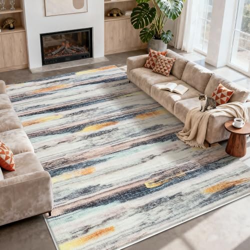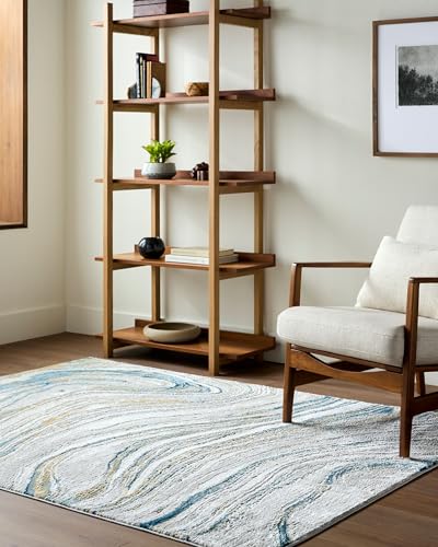 Livabliss Odunec Abstrakt matta – mattor vardagsrum 160 x 213 cm, matsal, lounge, kök, sovrum – modern marmormatta, mjuk lyxig lättskött medium hög matta, elfenben, blå, grå, rostmatta