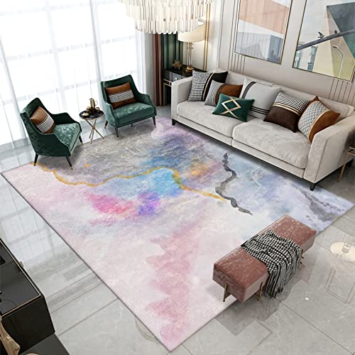 Matta matta för flickor flickrumstillbehör Rosa blå grå modern abstrakt bläck oljemålning stil mattor vardagsrum 140x200cm