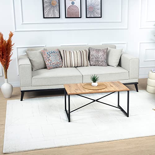 Livabliss Madrid geometrisk matta – Scandi-mattor vardagsrum 150 x 213 cm, matsal, kök – neutrala, abstrakta mönstrade mattor, boho-matta, lättskött lugg – stor matta, elfenben och ljusgrå matta