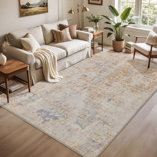 Calore tvättbara mattor vardagsrum vintage boho halkfria mattor mjuka mattor med låg lugg för sovrum, kök, matsal, matta golvmatta (retro beige, 120 x 160 cm)