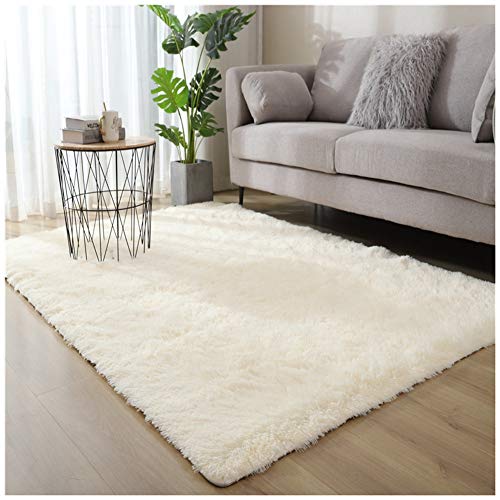 VOFUSHON lurvig matta vardagsrum mattor för stora storlekar vardagsrum modernt barnrum babymattor, mjuk fluffig sovrumsmatta (160 x 230 cm, ren vit)