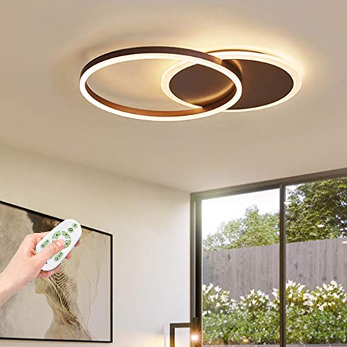 Vardagsrum, modern LED-taklampa, matbord, taklampa, 60 W, dimbar med fjärrkontroll, sovrum, 3 000 K – 6 000 K, dimbar, tak, hängande lampa, kök, hall, matsal, kontor, café, dekoration, lampor (brun)