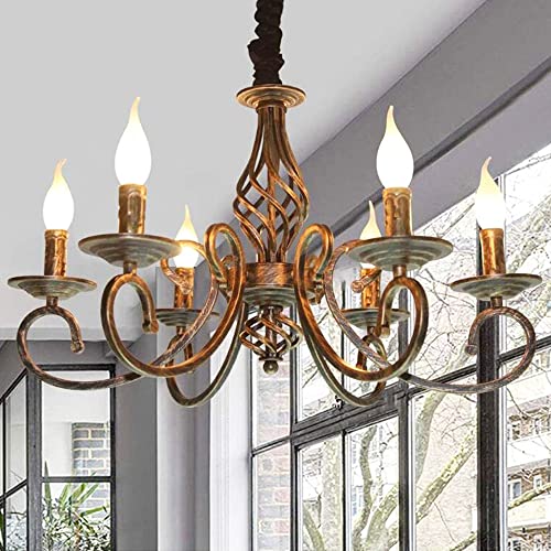 Rustik Ljuskrona Fransk Levande Ljus Antik Pendellampa E14 Vintage Hängljus Höjdjusterbar Smidesjärn Hänglampa Lantlig Stil Vardagsrum Sovrum Matsal Taklampa