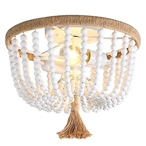 H.W.S Taklampa Vardagsrum Taklampa Trä Bondgård Ljuskrona Träpärlor E27 Vintage Pendellampa Inbyggnadsfäste Sovrum Kökslampa Matsal Hall Lampa (A)