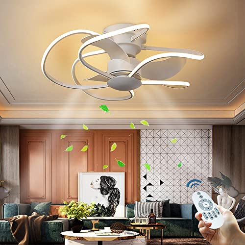 Barn Takfläkt Lampor med Fjärrkontroll APP Tyst Led Dimbar, Takfläkt med Lampor 6 Hastigheter Vändbara Vinter Sommar, Fläkt Ljus Tak Ljuskrona för Sovrum Litet Vardagsrum, Taklampa med Fläkt-White