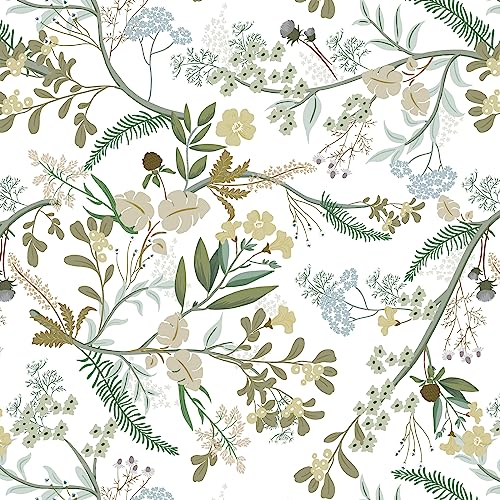 CiCiwind Självhäftande tapet, blommig grön tapet, 40 x 600 cm, med blad och blommor, möbelfolie, avtagbar vinylfilm för vardagsrum, sovrum, kök, vägg och skåp, dekoration