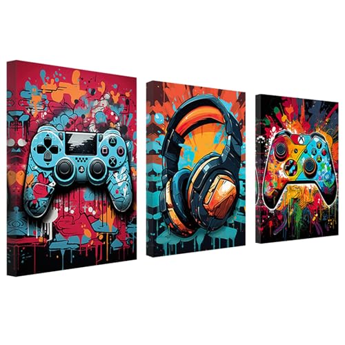 hocadon 3 paneler kanvastryck väggkonst spelmönster bildmålning 30 x 40 cm 3D-målning vägg vardagsrum affisch bild väggdekor för gåvor barnrum dekor