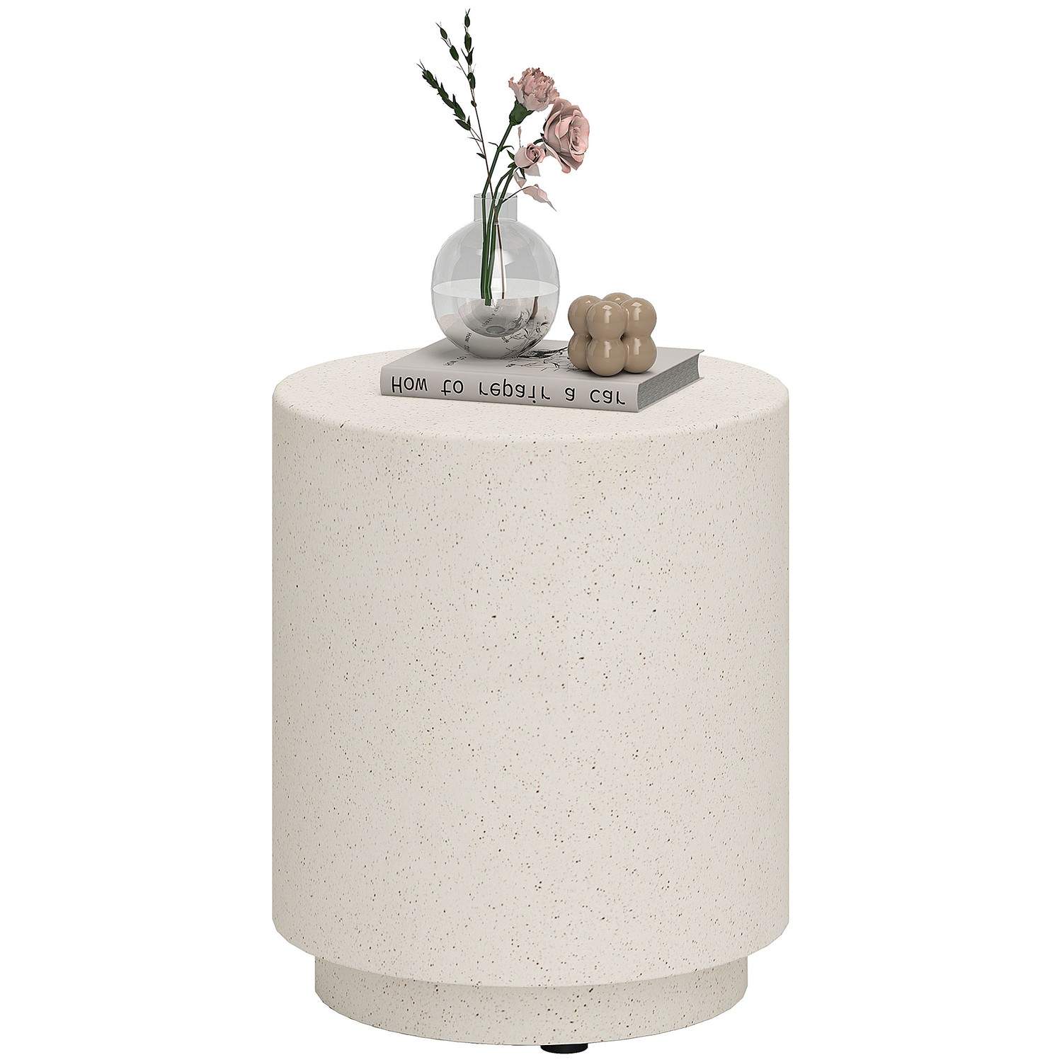 Sidobord, vardagsrumsbord med stenlook, soffbord, soffbord, soffbord för vardagsrum, trädgård Ø37 x 43 cm, gräddvit |