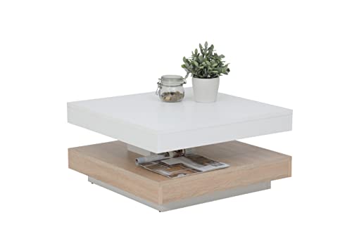 Apollo Soffbord vardagsrumsbord Andy, kvadrat, trämaterial, bordsskiva vridbar 360°, vit/Sonoma-ek, 67 x 67 x 35 cm