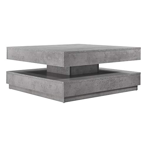 [en.casa] Soffbord, 76 x 76 x 38 cm, sidobord med vridbar bordsskiva och förvaringsyta, vardagsrumsbord, soffbord, betongutseende