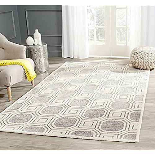 Safavieh Kalene stor rektangulär vardagsrumsmatta för inomhusbruk, polypropen, ljusgrå/svart, 120 x 180 cm