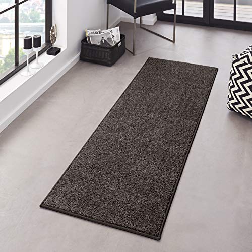 HANSE Home Pure Matta – vardagsrumsmatta tät kort lugg robust sovrumsmatta enfärgad modern för matsal, vardagsrum, barnrum, hall, sovrum, kök – brun, 80 x 300 cm