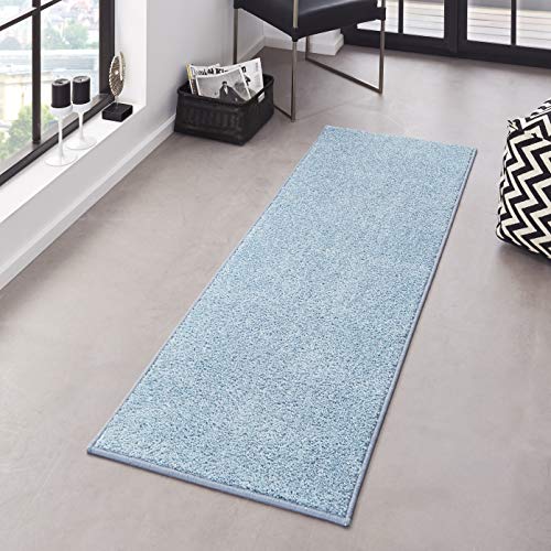 Hanse Home Pure Matta – Vardagsrumsmatta tät kort lugg robust sovrumsmatta enfärgad modern för matsal, vardagsrum, barnrum, hall, sovrum, kök – blå, 80 x 400 cm