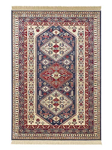Mint Rugs Klassisk vardagsrumsmatta sammetsmatta med fransar CULT (160 x 230 cm, 100% viskos, 9 mm höjd, lämplig för golvvärme), blå, syntetfiber