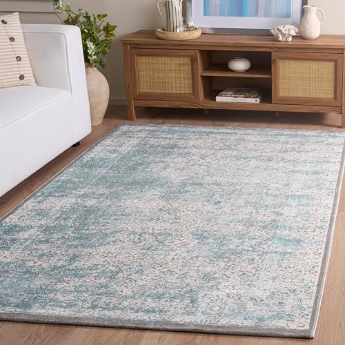 Safavieh Kameni stor rektangulär vardagsrumsmatta för inomhusbruk, polypropen, ljusgrå/blå, 120 x 180 cm