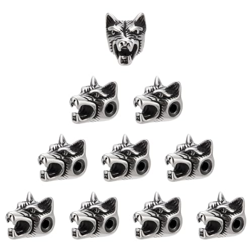UNICRAFTALE 10 st rostfritt stål pärlor varghuvud antik silver armband för män pärlor distans gör-det-själv smycken resultat