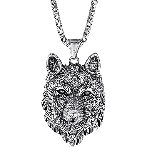 Xinlon Viking-varghänge, herrhalsband med varghuvud hänge, vikingahalsband för varghuvud hänge, för män, kvinnor, vargsmyckestillbehör, titanstål, Titan