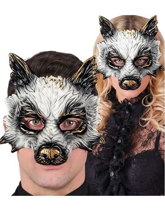 Vit plast & kort vargmask (1 del) – iögonfallande design, perfekt tillbehör för Halloween, cosplay, festivaler, djurtema fester och mer