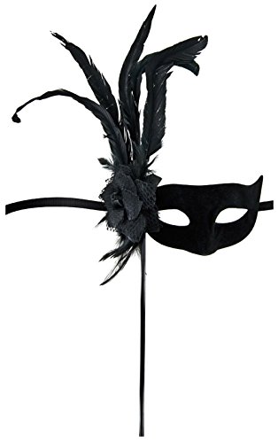 Maskarade Svart vargmask med blomma/fjädrar