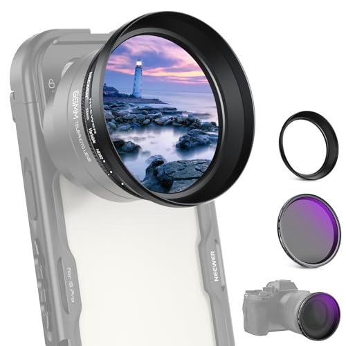 NEEWER 58 mm variabelt ND-filter med 62 mm linshuvskärm, ND2-32 1-5 stoppar justerbart neutralt densitetsfilter för NEEWER 65 mm telefototelefonlins och 58 mm kameralins, FL-105
