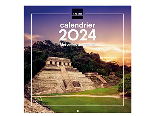 Finocam - 30 x 30 väggkalender för notering 2024 januari 2024 - december 2024 (12 månader) franska världens underverk