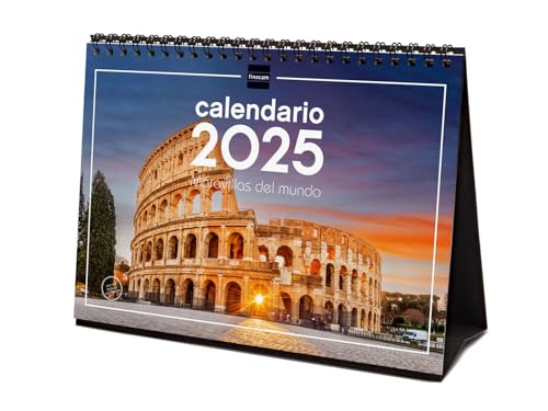 Finocam - Kalender för skrivbordsbilder att skriva 2025 månad Vista januari 2025 - december 2025 (12 månader) Världens spanska underverk