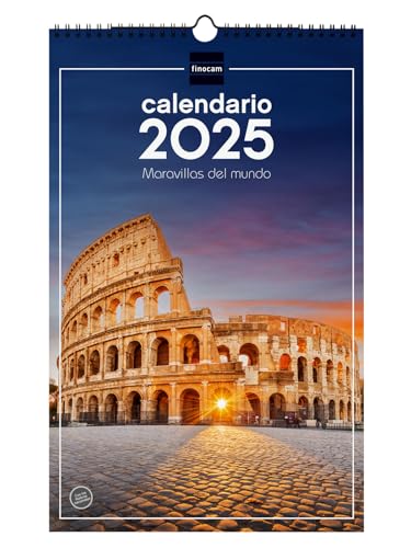 Finocam - Spiral Väggbildskalender för att skriva 2025 månad Vista januari 2025 - december 2025 (12 månader) Världens spanska underverk