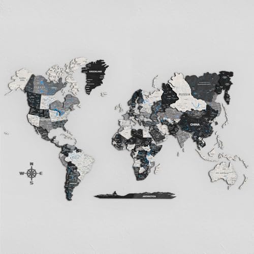Giallobus - 3D världskarta - 3D världskarta - MDF trä - 3D KARTA - 190x108,5-04 - Ash-tounding OVERLAY - Väggdekoration - Flernivå MDF-trä - Vardagsrum Kontor Sovrum