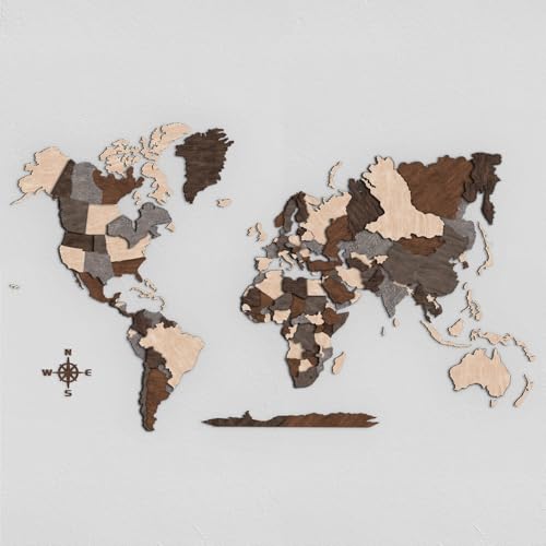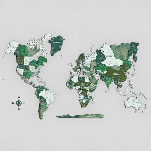 Giallobus - 3D världskarta - 3D världskarta - MDF trä - 3D KARTA - 190x108,5-13 - Forest - Väggdekoration - Flernivå MDF-trä - Vardagsrum Kontor Sovrum