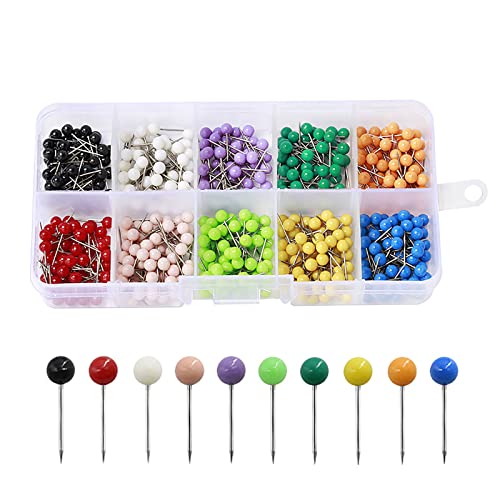 WUDQIJI Pinnålar kort nagel runt huvud stift 500 stycken Φ4 mm x 15 mm karta push pins anslagstavla huvud nålar häftstift riva naglar markeringsnålar runda huvudnålar för världskarta (10 färger)