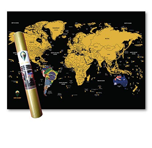 Global Walkabout skrapkarta med flaggbakgrund – deluxe resestorlek världskarta affisch – länder och fakta – resegåva (svart)