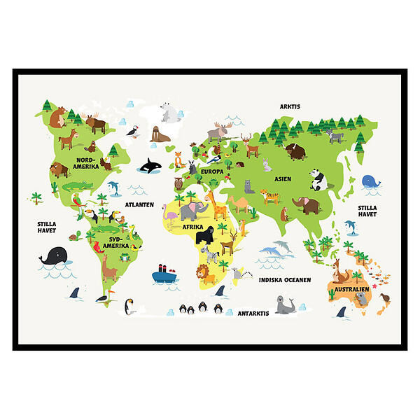 Gallerix Poster Barnens Världskarta Med Djur 3161-21x30