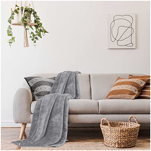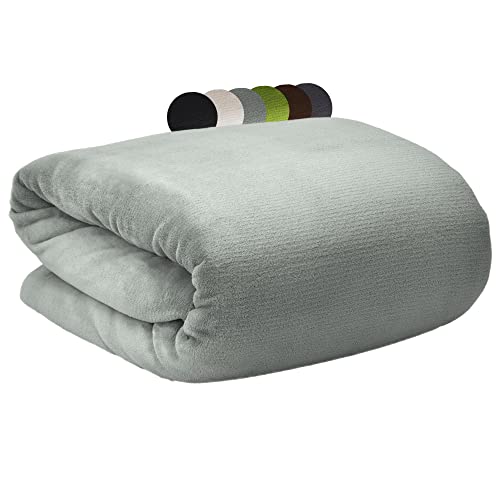 Isadora Paris Supermjuk och lätt sofföverdrag i ren bomull för soffa, säng, ultra lyxig varm och bekväm filt för alla årstider, enfärgad grå Abbey Stone Pläd