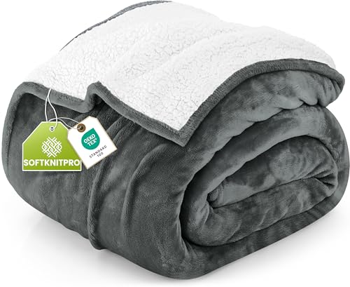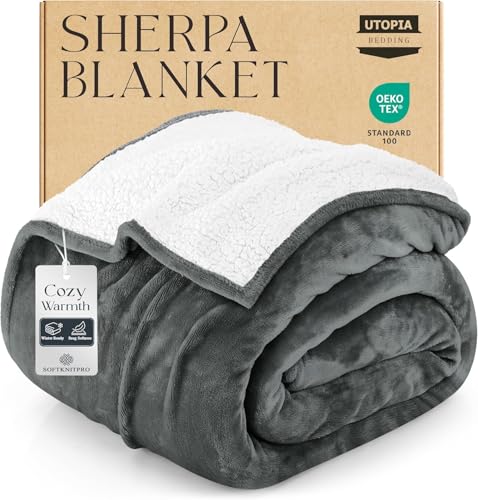 Utopia Sängkläder Sherpa filt [Grå, 228x259 cm] - 480 GSM Tjock varm fleece vändbar filt för säng, soffa, soffa, camping och resor