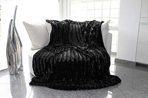 Brandsseller Gosig pälsimitation dubbelsidig 150 x 200 cm – fluffig fuskpälsfilt soffa och säng, varm lyxig filt, mjuk och mysig – 100 % polyester, tvättbar – svart
