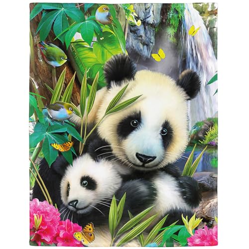 Yisumei Varm filt, mjuk och bekväm, lättskött filt, maskintvättbar, vackra pandor, bomullsblandning, färg 1, 150 x 200 cm