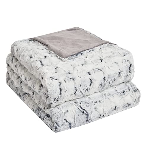 GRACED SOFT LUXURIES Mjukaste filt varm elegant mysig fluffig tjock bekväm mjuk fuskpäls för hem, soffa, soffa, säng (marmorerat elfenben, stor 127 cm x 152 cm)