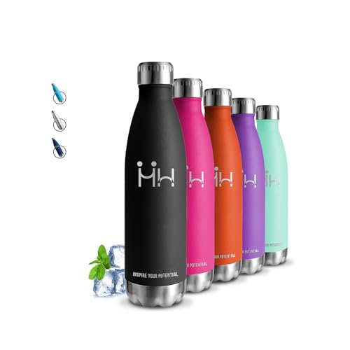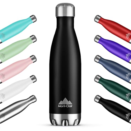 Mont-Clair 500 ml termisk vattenflaska i rostfritt stål, termiska vattenflaskor - 12 timmar varm dryck och 24 timmar kall dryck - termosflaska, BPA-fri, vattenflaska, flaska, 500 ml, svart