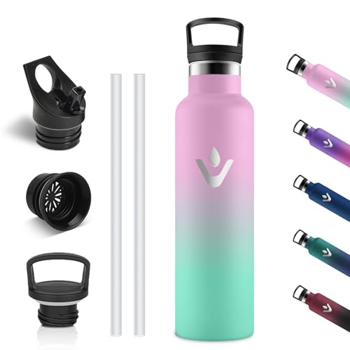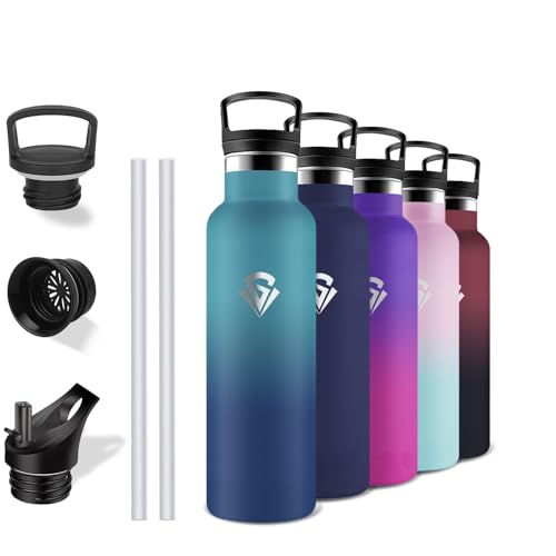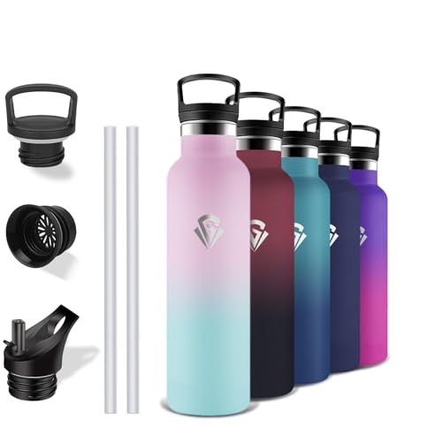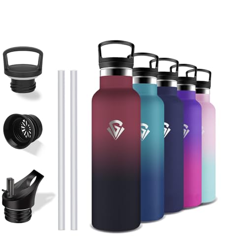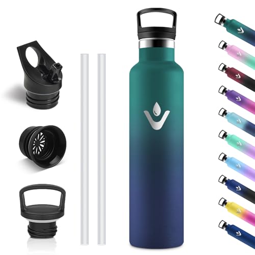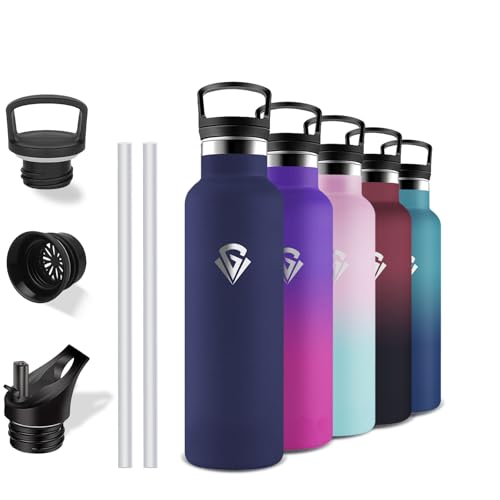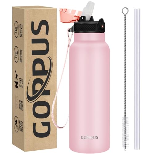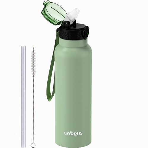 GOPPUS 750 ml/24 oz isolerade vattenflaskor med sugrör 0,75 liter metallflaskor stål termisk flaska rostfritt stål gymflaska dubbelvägg dryckesflaska läckagesäker varm/kall vattenflaska BPA-fri