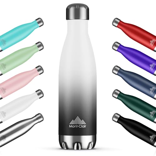 Mont-Clair 500 ml termisk vattenflaska i rostfritt stål, termiska vattenflaskor - 12 timmar varm dryck och 24 timmar kall dryck - termosflaska, BPA-fri, vattenflaska, flaska, 500 ml, vit och grå