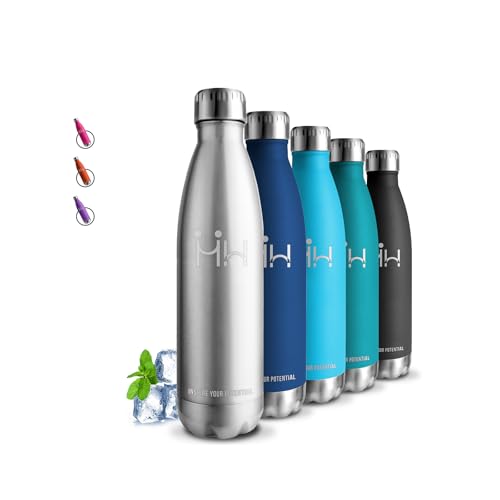 Typhoon vattenflaska av rent stål | dubbelväggig | Läckagesäker och kondensationsfri | Isolerad återanvändbar flaska med bred hals | Håller kall i 24 timmar, varm i 12 timmar, 500 ml