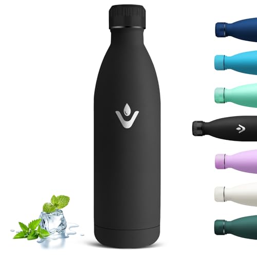 Mont-Clair 750 ml termisk vattenflaska i rostfritt stål, termiska vattenflaskor - 12 timmar varm dryck och 24 timmar kall dryck - termosflaska, BPA-fri, vattenflaska, flaska, 750 ml, svart