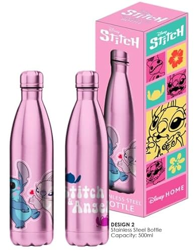 HÔMADICT DISNEY ISOTERM FLASKA - återanvändbar Stitch & Angel Kiss vattenflaska i rostfritt stål - 12 timmars varm och kall förvaring - för sport, resor, dagligen, 500 ml - BPA fri - officiell licens