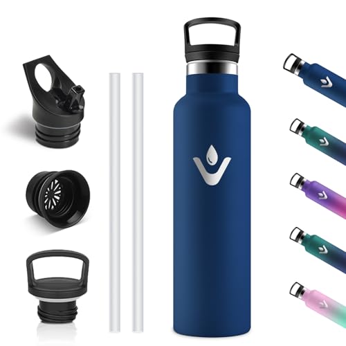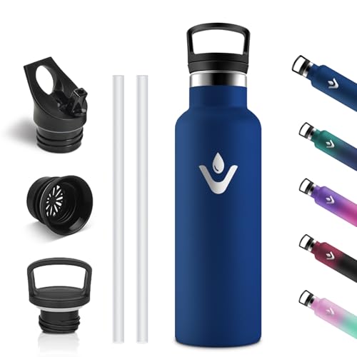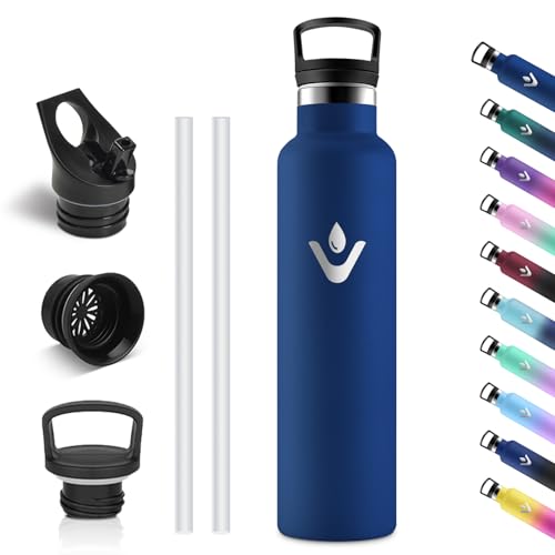 Exllena Isolerade vattenflaskor 750 ml med klämma, dubbel vägg vakuumdrycker flaska håller drycker kalla 24 timmar/varm 12 timmar, rostfritt stål vattenflaska BPA-fri (mörkblå)